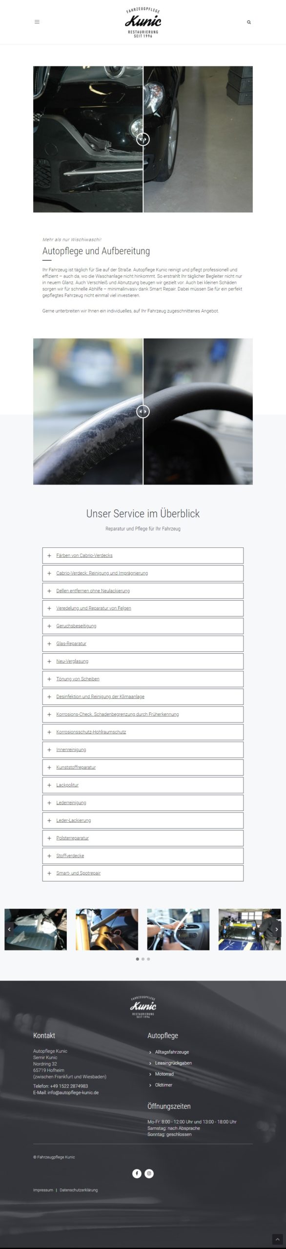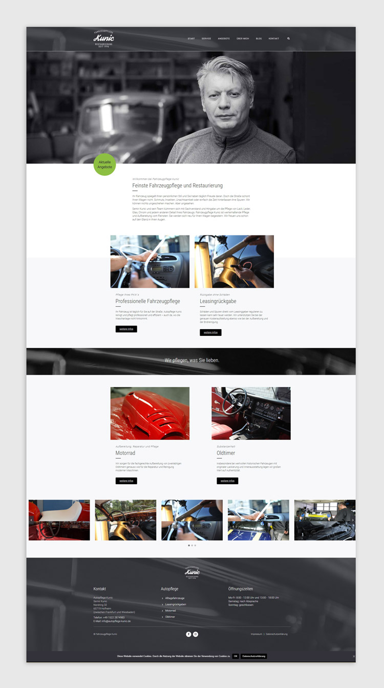 Für Fahrzeugpflege Kunic, spezialisiert auf die Restauration und Pflege klassischer Fahrzeuge, wurde ein authentischer und hochwertiger Markenauftritt geschaffen.